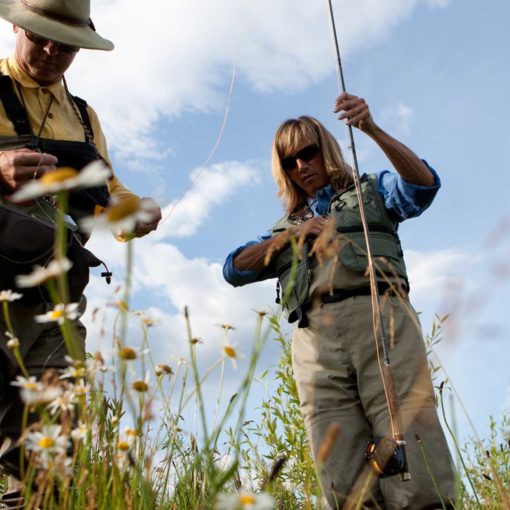 A great strategy to picking off a lot of risers is to start at the tail of a pool and wait for rising fish. A lot of false casting and wading will spook the trout. Be patient and pick off fish slowly as you move through the run. Green Drakes have a dun wing upon hatching and then molt into the mature adult with clear wings known as spinners. The females return to the water to lay eggs, but this is typically after sunset. Size 10 and 12 dry flies are my favorite sizes for the hatch. Green Drake specific flies in standard, parachute, and cripple patterns all produce, as well as green-colored flies of other varieties such as stimulators. One of my go-to setups is a double dry rig with a foam or hair wing Drake followed by a cripple.