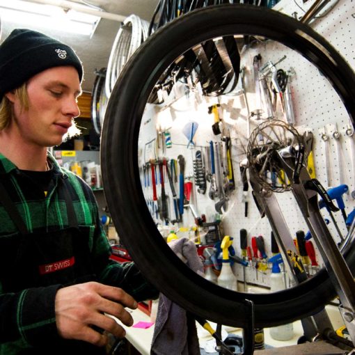 The best place to start is your wheels. Pick up the bike and give your wheels the ol’ spin test. If they spin without your tires contacting your frame, you’re in a good spot. Look closely at your axles and make sure your wheels are seated properly in the frame and fork. Your wheel shouldn’t have any significant wobbles where the tire is contacting the frame. If it does, check for loose and broken spokes. Do what you can to either remove them completely or wrap them around another spoke. Although it is possible to ride with a couple broken spokes, they should be replaced ASAP for safety and performance.